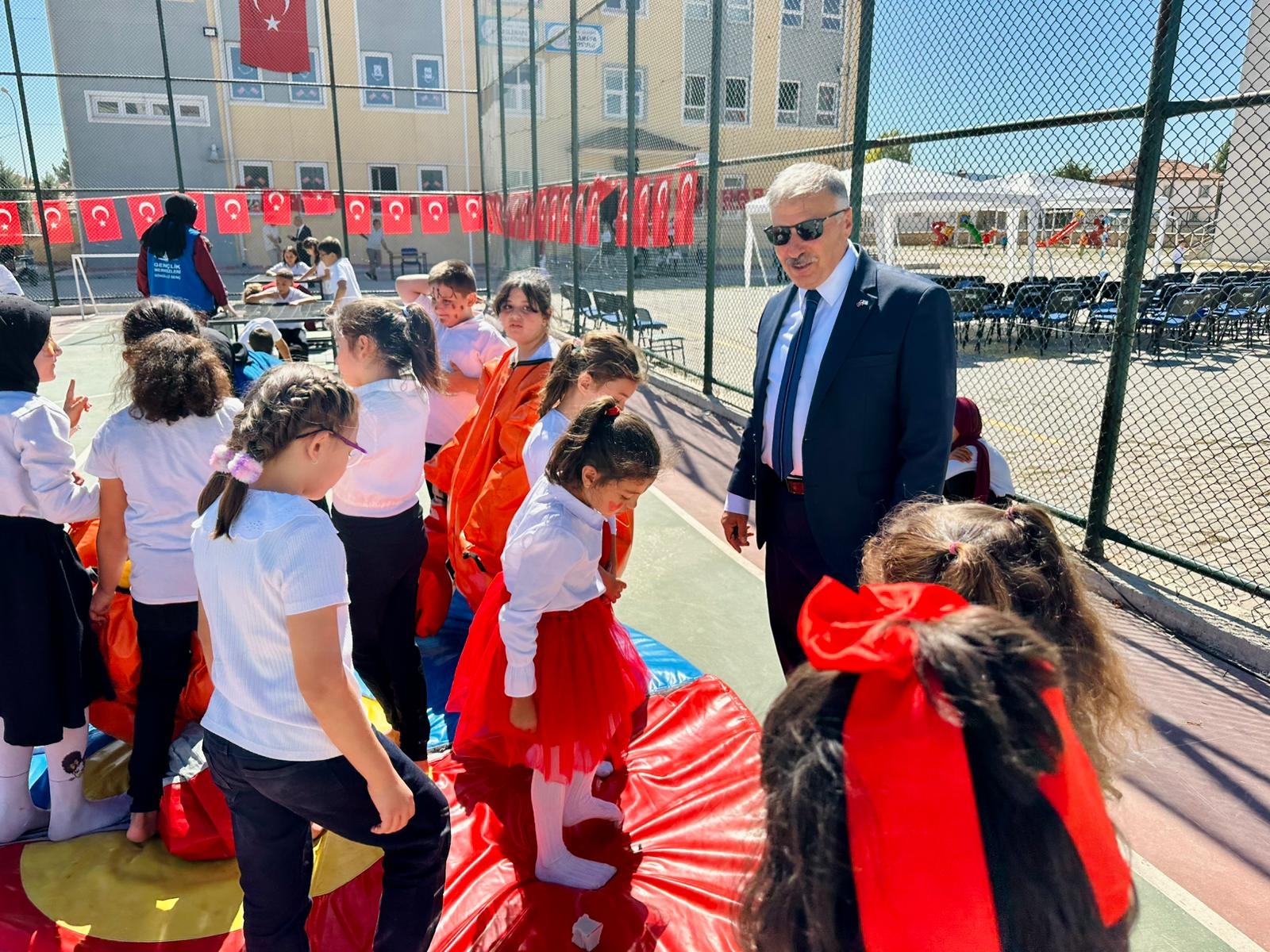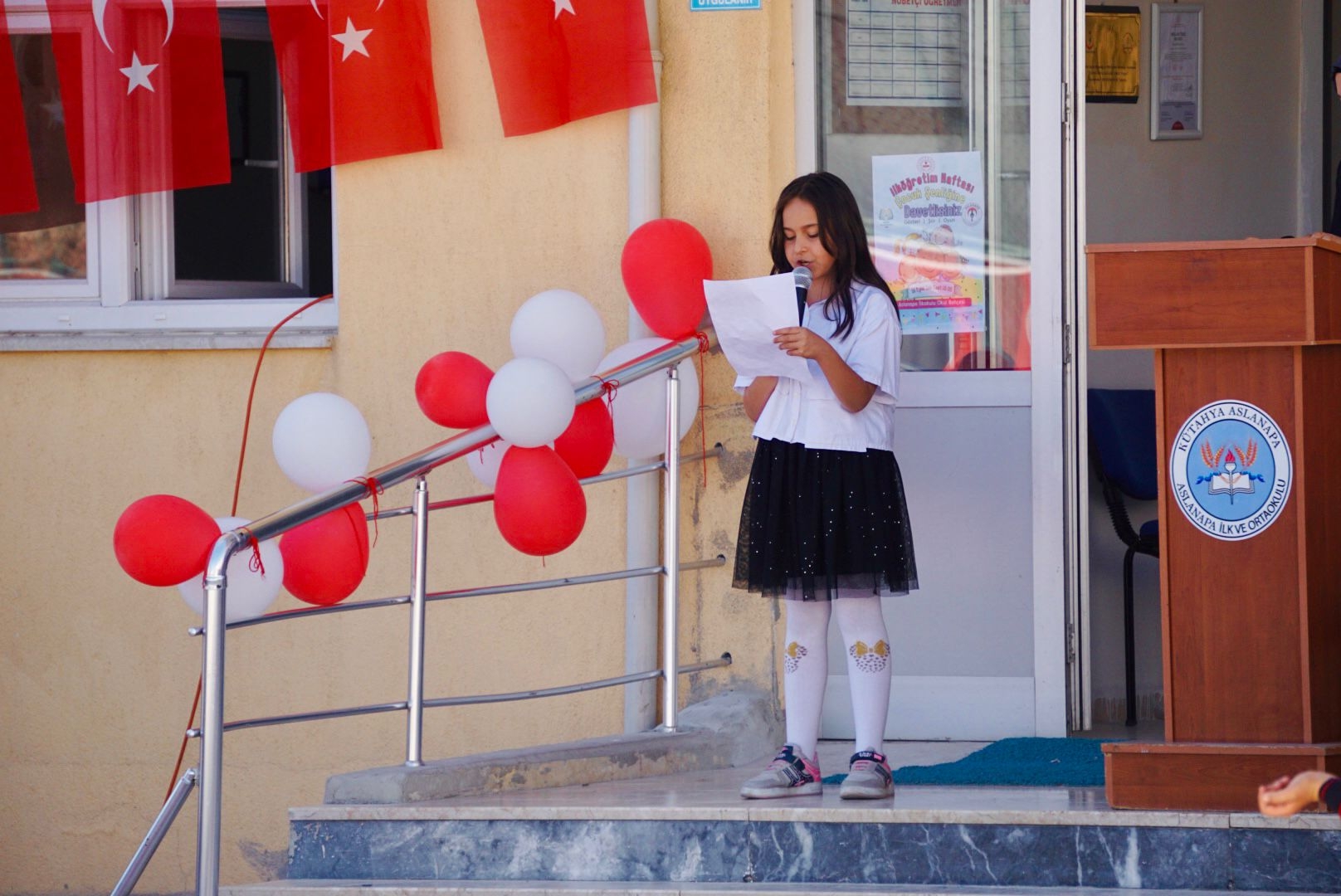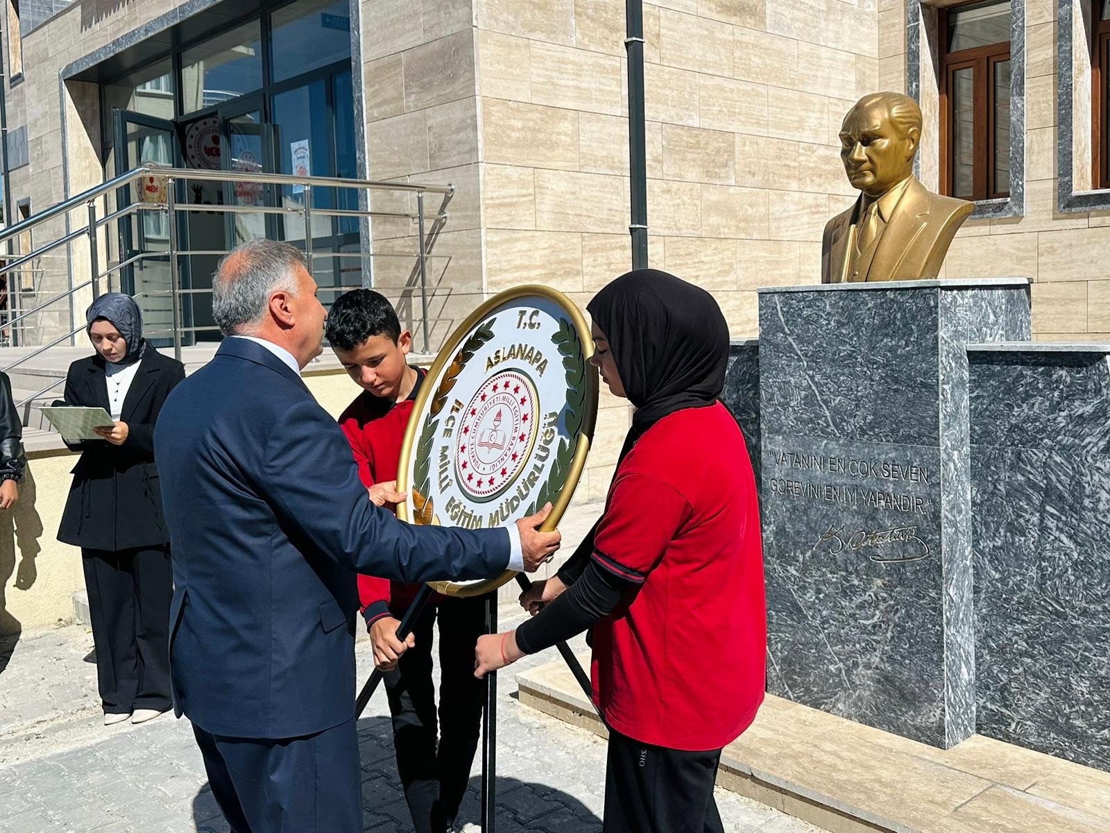 Ardından kutlama programı İlçe Kaymakam Vekili Sayın Murat Ak ve kurum amirlerinin katılımıyla Aslanapa İlkokulu bahçesinde devam etti. İlçe Milli Eğitim Müdürümüz İdris IŞIKLI konuşmasında, her şeyin insanı sevmekle başladığını vurgulayarak, eğitimin toplumun geleceği için en önemli unsur olduğuna dikkat çekti. Öğrencilere başarı dileklerini ileten IŞIKLI, velilere ve öğretmenlere de önemli sorumluluklar düştüğünü ifade etti. Şehitlerimizi rahmetle anan, gazilerimize şükranlarını sunan IŞIKLI; Kaymakamımıza, Belediye Başkanımıza ve Gençlik ve Spor İlçe Müdürlüğüne katkılarından dolayı teşekkür ederek 2025-2026 eğitim öğretim yılının hayırlı olmasını diledi.